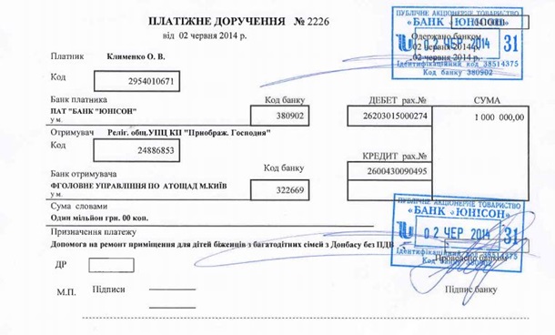 Сюжети мали свій результат і на початку червня на рахунок надійшов мільйон гривень від екс-міністра доходів і зборів Олександр Клименка, який зараз перебуває за кордоном.